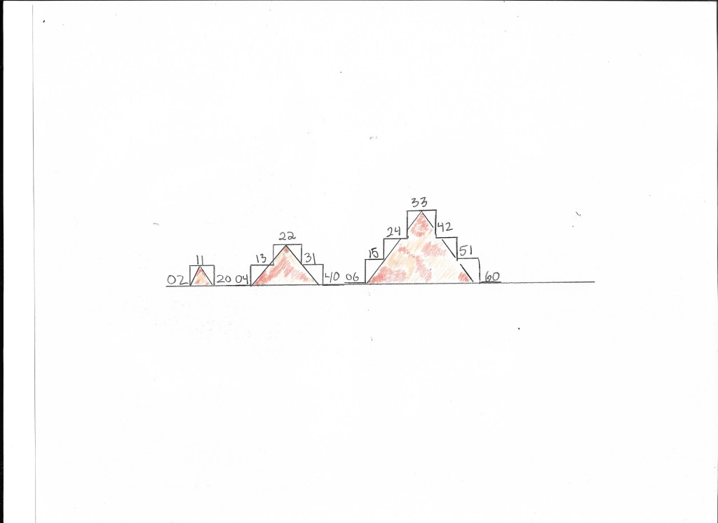 Now, take a look at my drawing of the Egyptian Pyramids, and notice the numbers around each them. According to numerology, 11, 22, and 33 are Master numbers.