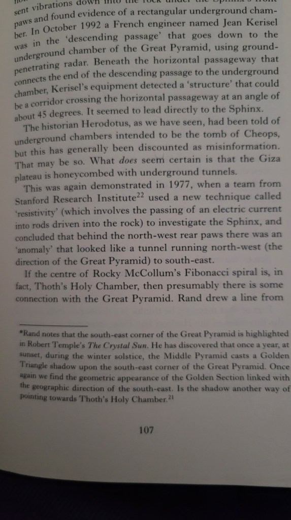 Now, from this paragraph, I’m learning there’s what appears to be a tunnel running from the NW to the SE from the back paws of the sphinx.