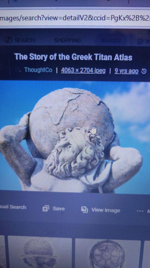 Here’s a picture of Atlas, the Greek Titan with the world/globe sitting on the back of his neck.