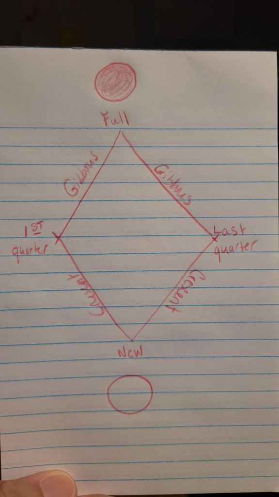 For a moment, I would like you to think of the lunar cycle as a diamond. Please excuse my drawing skills 🤣.