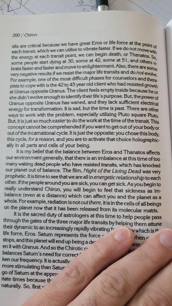 The four pages I’ve provided are from the book, Chiron rainbow bridge between the inner and outer planets, and it was written by, Barbara Hand Clow.