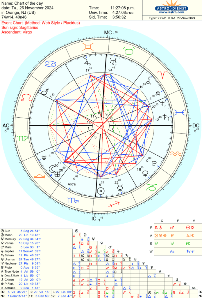 We know the new moon was in Aries, and therefore, when the moon culminates, becomes full, and is 100% illuminated, it will be in opposition to where it was when it was new.