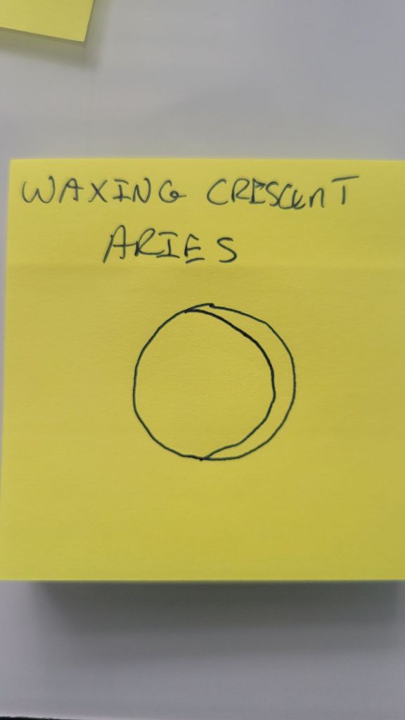 There’s a new moon in Aries on the night of January 1st. On the second night, the door opens and a little bit of light shines in. On the second night, the new moon is in its waxing crescent phase, and it’s illuminated 1%. The cycle begins.